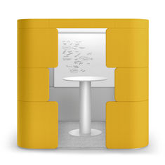 圓形或方形結構搭配優異的聲學遮蔽效果,彷彿「空間中的空間」,既保有開放感,又能提供適度隱私,非常適合用於 腦力激盪、臨時會議或快速溝通。
